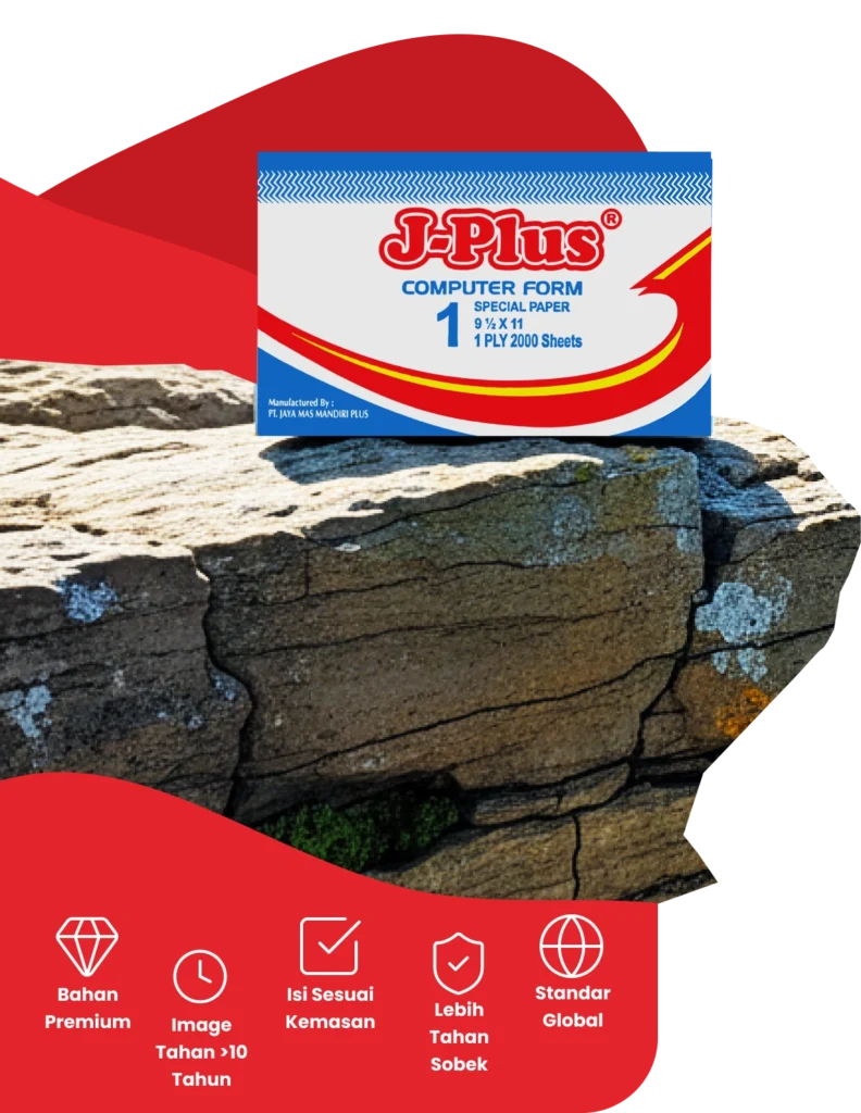 Kertas Continuous Form J-Plus memiliki ketahanan hingga 10 tahun, memastikan hasil cetak tetap jelas dan awet.