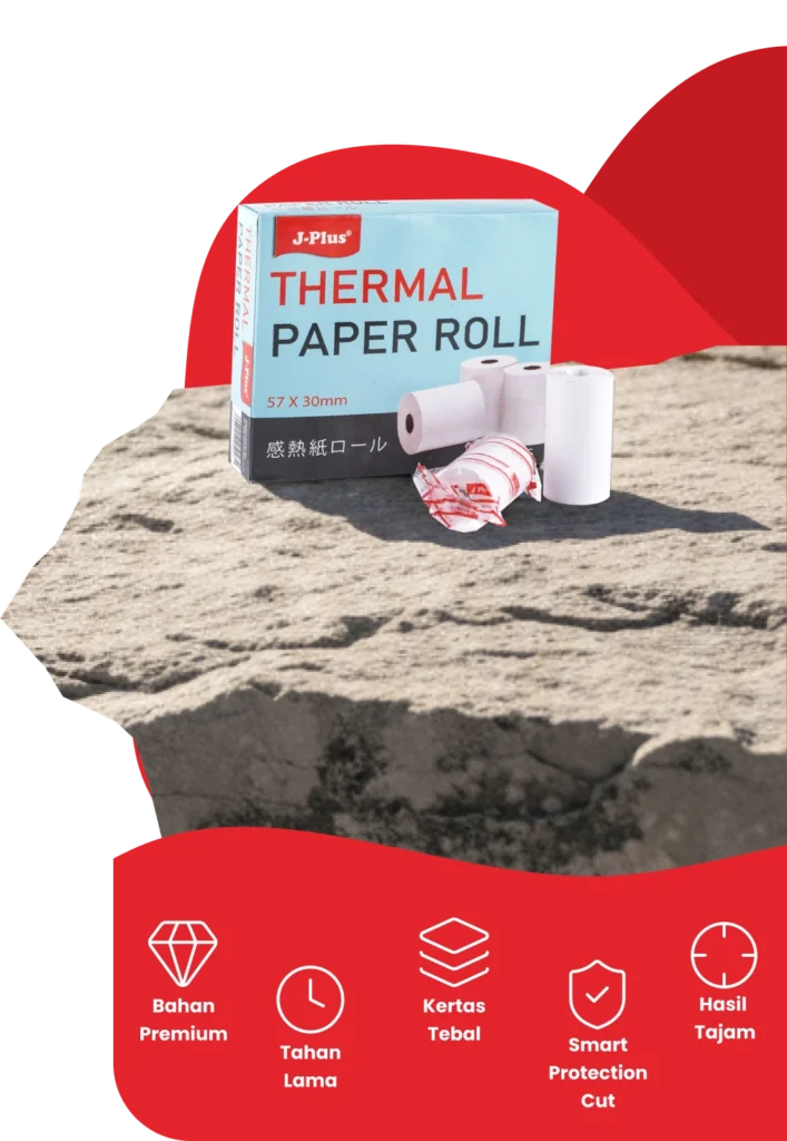 Thermal Paper J-Plus adalah kertas khusus untuk printer kasir atau nota yang mencetak tanpa tinta menggunakan panas.